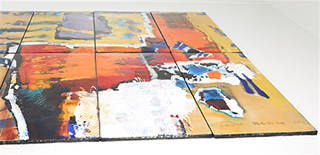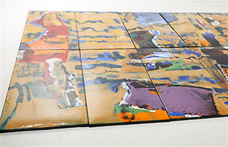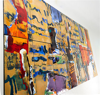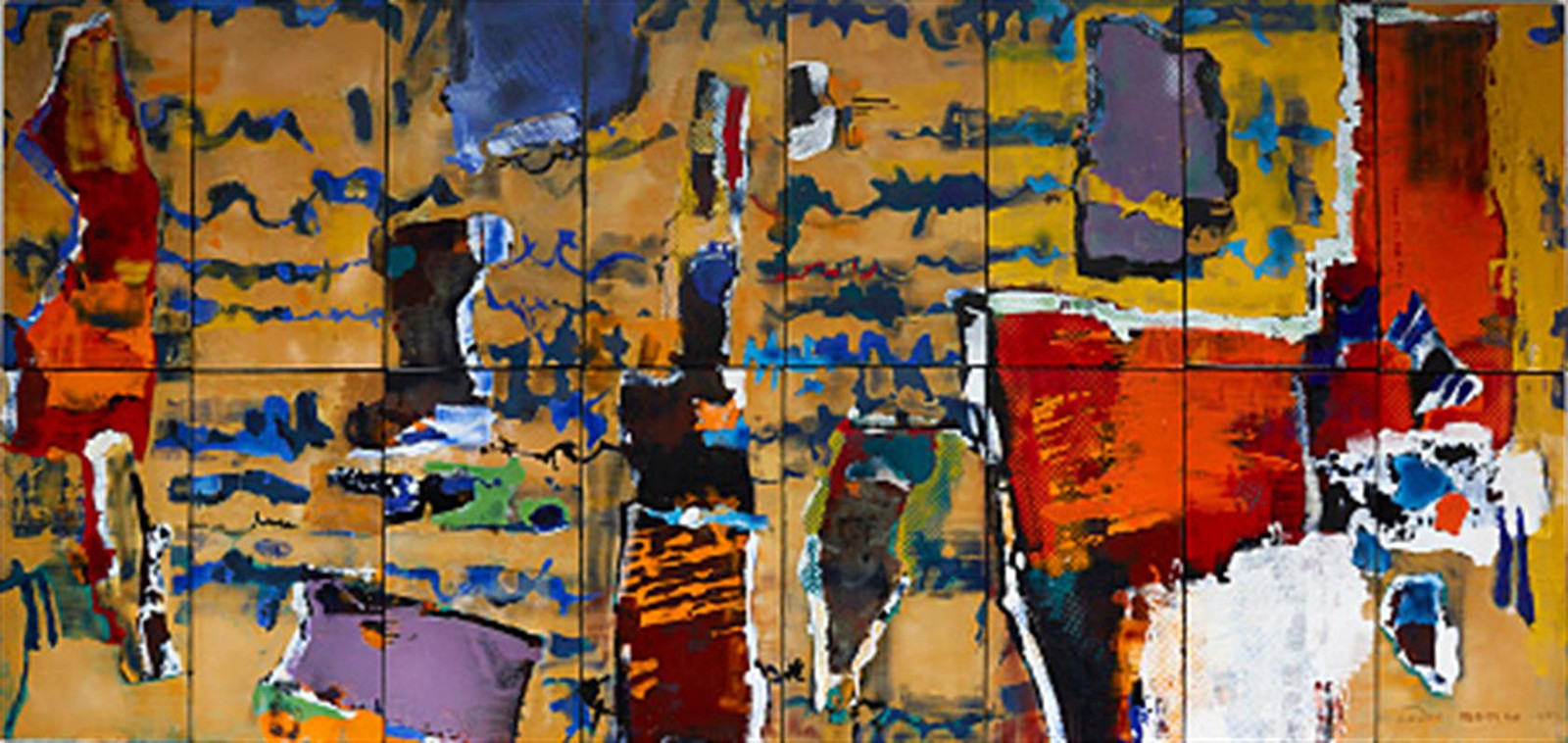 Signováno a datováno vpravo dole Endre Nemes 1961. Polychromovaný smalt na plechu, sestávající ze 16 částí. Celkové rozměry 244 x 488 cm. Součástí je ocelový rám pro zavěšení v původním stavu. Provenience: aukce umění - Stockholms Auktionsverket, 18. 7. 2017.